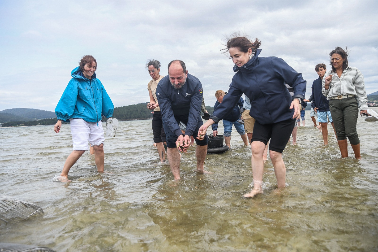 Os participantes no evento Estrelas Solidarias no Camiño de Santiago realizaron unha sementeira de marisco galego na Ría de Muros Noia promovida por Turismo de Galicia