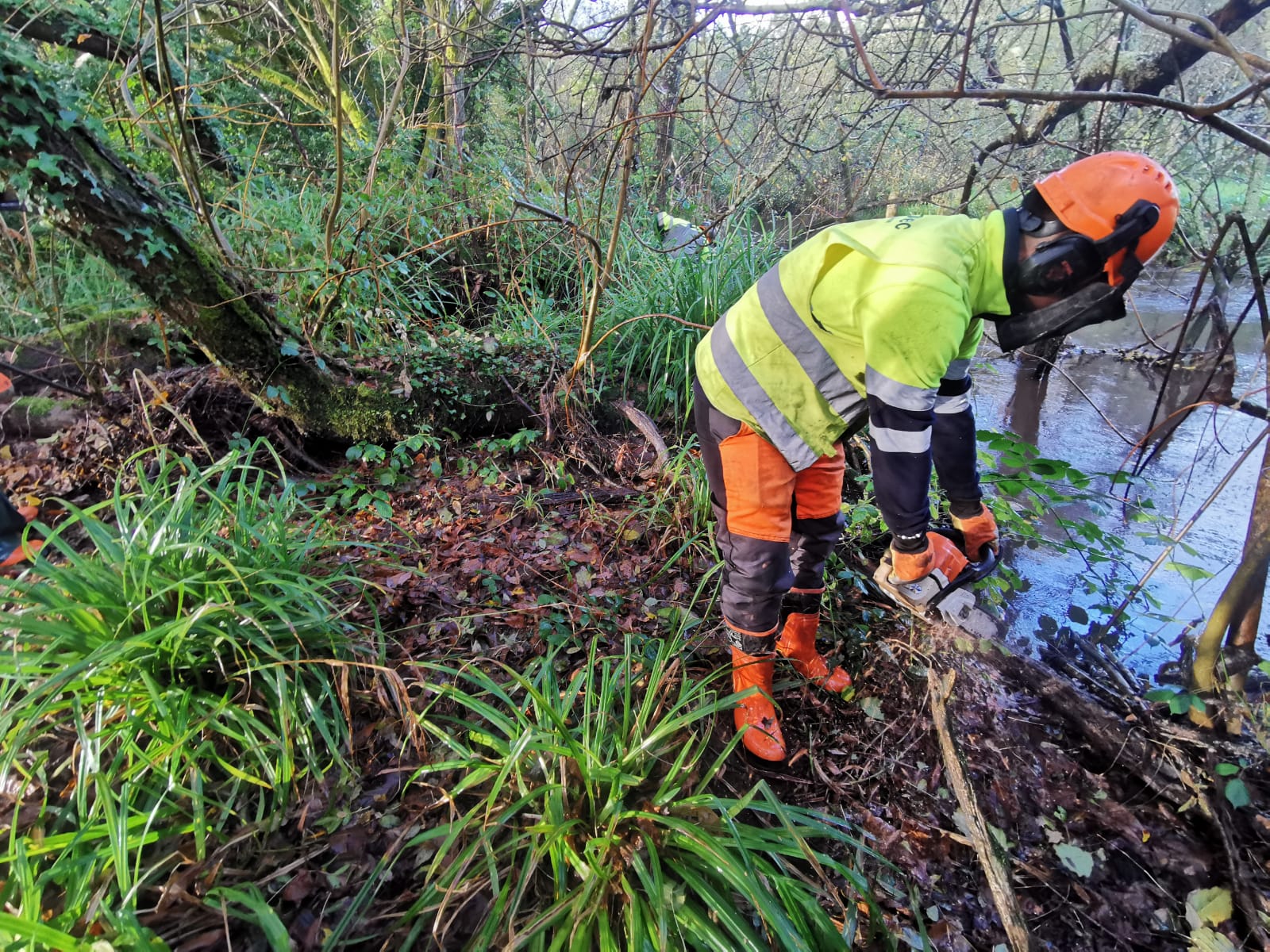 Las tareas que realiza Augas de Galicia se prolongarán durante alrededor de ocho semanas e incluyen la retirada tanto de árboles caídos como de biomasa de los canales fluviales para evitar atoramientos