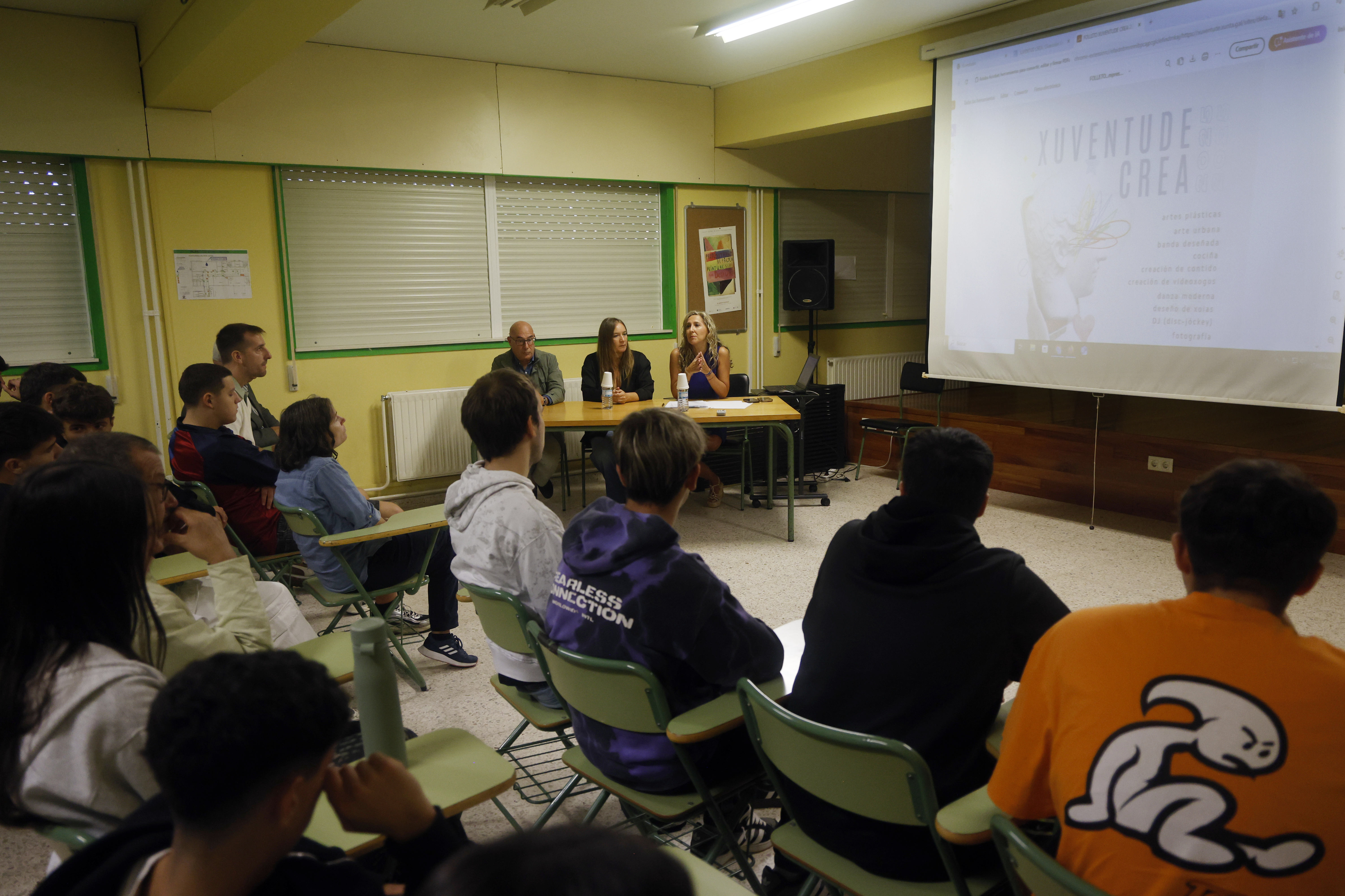 A delegada territorial de Ferrol acudiu esta mañá ao IES Terra de Trasancos, en Narón, onde informou aos alumnos de Bacharelato sobre as bases do certame convocado pola Consellería de Cultura, Lingua e Xuventude