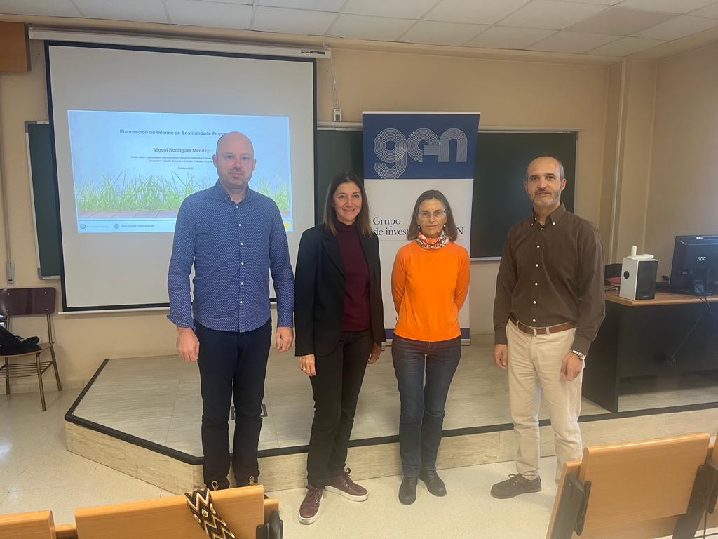 A directora xeral de Relacións Laborais, Elena Mancha, asistiu hoxe na Facultade de Comercio de Vigo á apertura dunha das sesións desta iniciativa que afonda na elaboración do Informe de Sustentabilidade Empresarial
