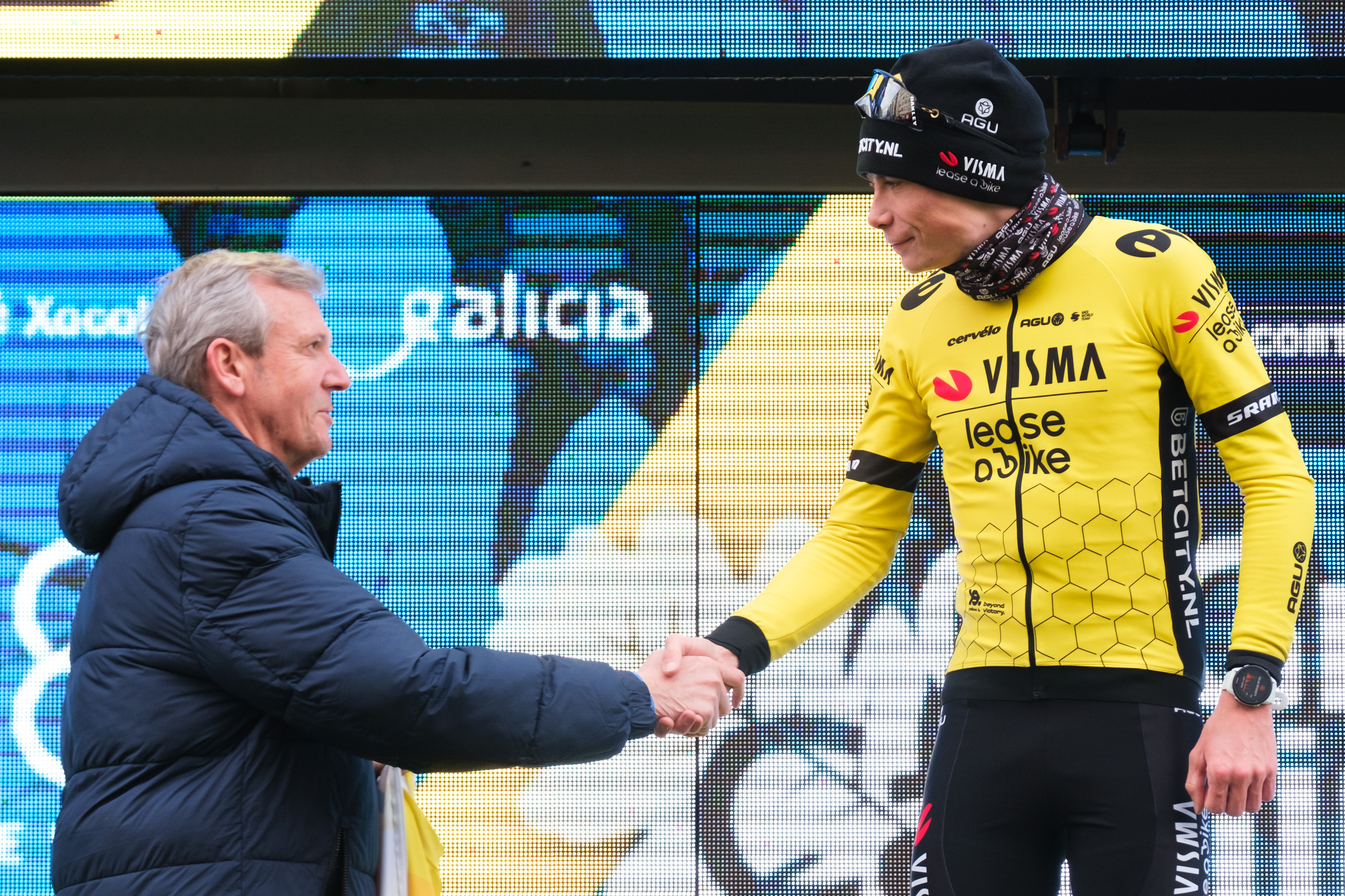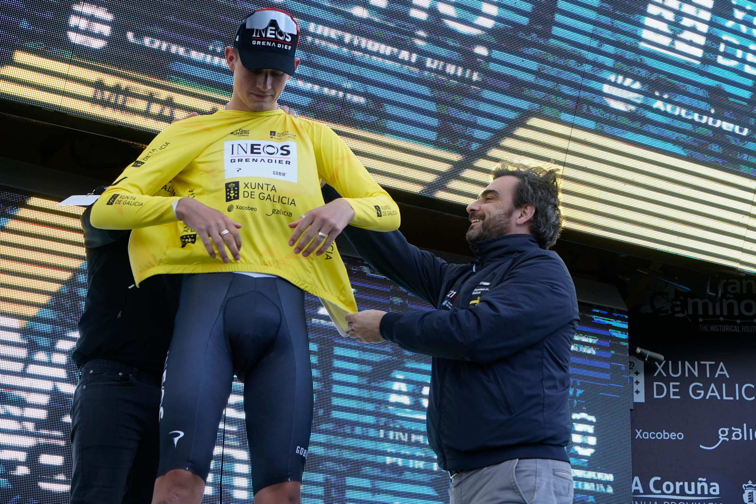 Entrega el maillot amarillo Xunta de Galicia al vencedor de la tercera edición de O Gran Camiño, el danés Jonas Vingegaard que repite su victoria del año pasado