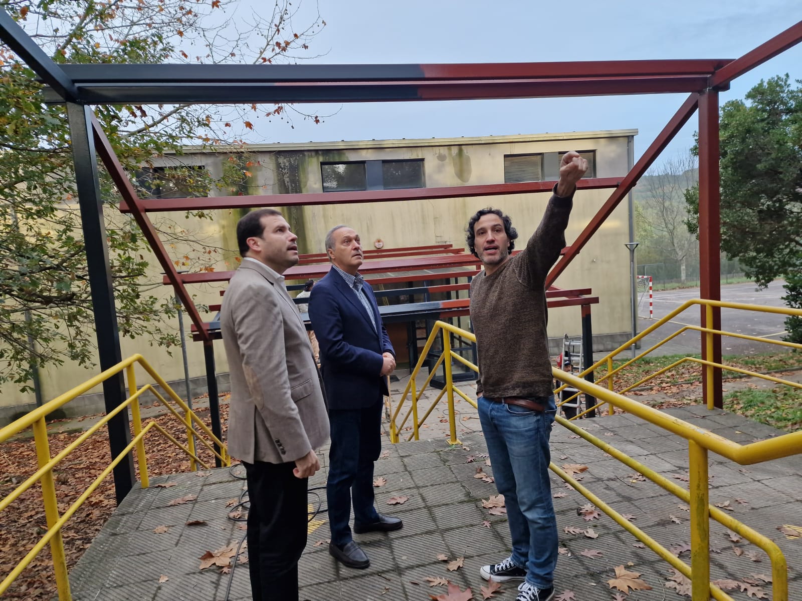 A piques de concluír a instalación da nova cuberta nas escadas de acceso ao ximnasio do IES de Cotobade