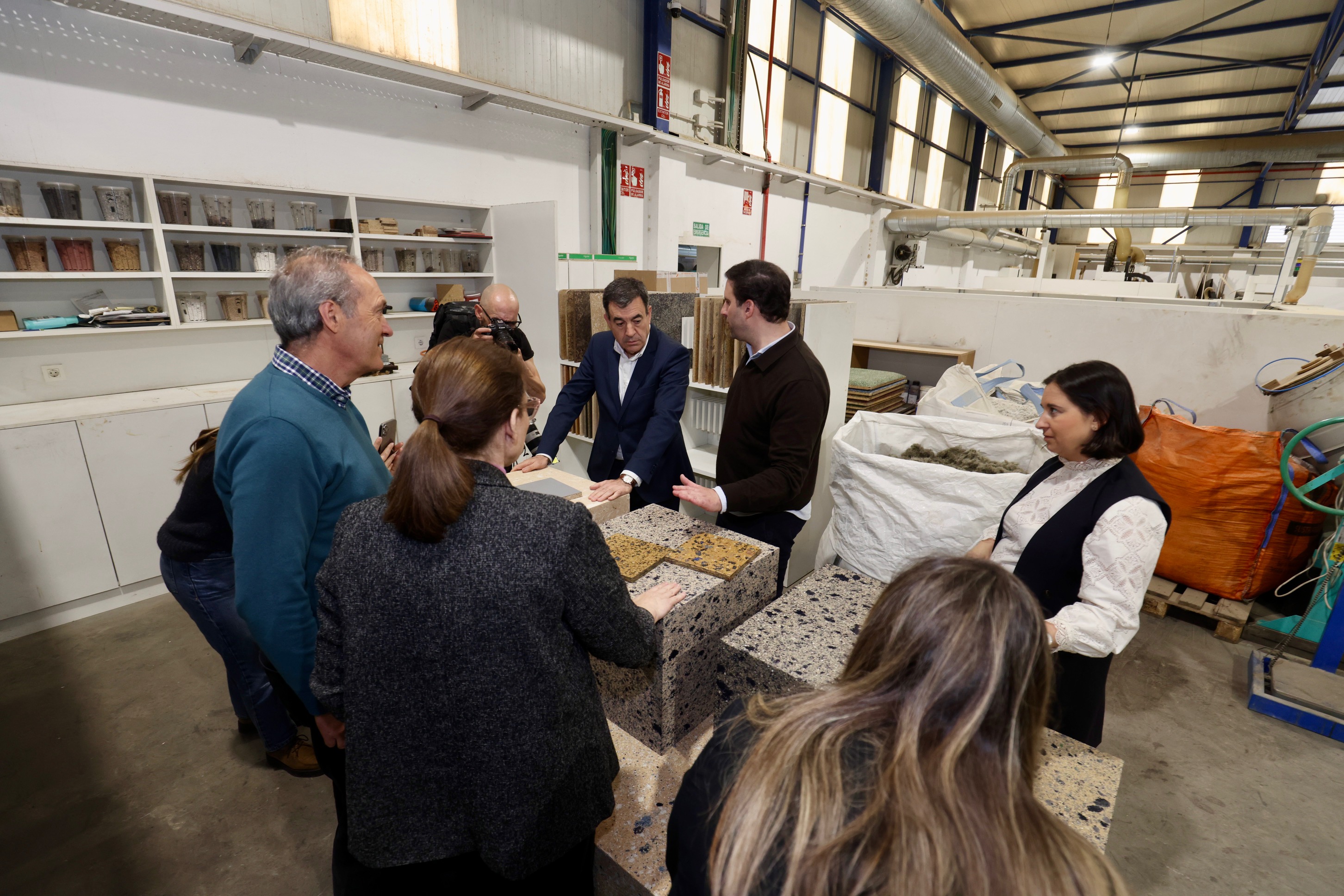 O conselleiro de Educación, acompañado do delegado da Xunta en Pontevedra, visita esta firma punteira no deseño de materiais sostibles para o sector da construción